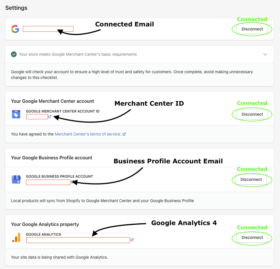 - Click on the Settings tab within the Google & YouTube app in Shopify.